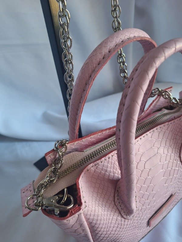 Cartera de cuero mini.. cuenta con un bolsillo interno, acceso a su interior con cierre ykk para más seguridad y correa larga con cadena plata combinada con cuero para más comodidad..